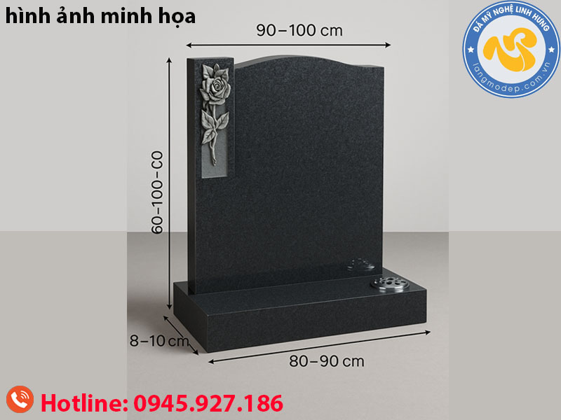 Bia mộ được thiết kế tinh xảo với kiểu dáng đứng thanh thoát, nổi bật là hoa văn chạm khắc hoa hồng sống động – biểu tượng của tình yêu và tưởng nhớ. Đặt vững chãi trên chân đế đồng bộ và tiện lợi với khay cắm hoa, mỗi sản phẩm là sự kết hợp hoàn hảo giữa nghệ thuật và lòng thành kính, tôn vinh ký ức vĩnh cửu.