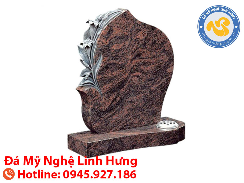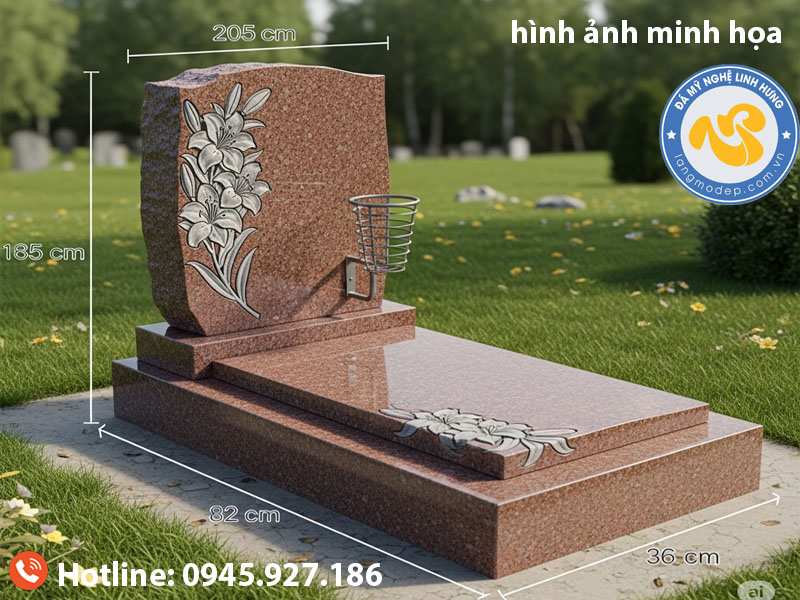 Thiết kế mộ đá của chúng tôi là sự hòa quyện giữa nghệ thuật và tâm linh. Đường nét cong mềm mại mang đến vẻ thanh thoát, sang trọng. Điểm nhấn là hoa văn loa kèn được điêu khắc sống động, biểu tượng của sự tinh khiết và hy vọng. Bề mặt được trau chuốt tỉ mỉ, kết hợp đế vững chắc và vị trí cắm hoa tiện lợi, tạo nên một tổng thể hài hòa, trang nghiêm và đầy ý nghĩa cho nơi an nghỉ.