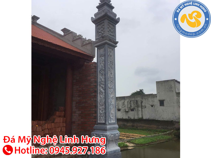 Cột Đồng Trụ Đá Vuông Nguyên Khối được chế tác từ đá xanh tự nhiên nguyên khối, chủ yếu từ Thanh Hóa hoặc Ninh Bình. Đá có độ bền cao, màu sắc trầm cổ và dễ chạm khắc, phù hợp để thể hiện hoa văn truyền thống như hoa sen, tứ linh, mây lửa. Vừa mang giá trị thẩm mỹ, vừa thể hiện ý nghĩa tâm linh, loại cột này là lựa chọn lý tưởng cho đình chùa, nhà thờ họ và các công trình văn hóa Việt.